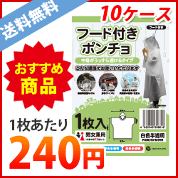 品番 PONCHO-WHITE-10 販売価格(1箱) 24000円x10箱(税込)21818.2円(税抜) 肩幅×丈(mm) 約1260x約1000mm 1枚あたりの価格 【税込】240円【税抜】218.2円 1冊あたりの枚数 1枚入り 1箱あたりの冊数(合計枚数) 100冊入り(枚/箱) 材質 PEVA 突然の雨対策や災害時の防寒・保温に スポーツ観戦、野外ライブにも、マラソンや自転車通勤にも最適 男女兼用(対象年齢13歳以上)フード付ポンチョ 白色半透明 まとめて10ケース(箱)