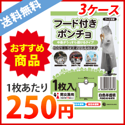 品番 PONCHO-WHITE-3 販売価格(1箱) 25000円x3箱(税込)22727.3円(税抜) 肩幅×丈(mm) 約1260x約1000mm 1枚あたりの価格 【税込】250円【税抜】227.3円 1冊あたりの枚数 1枚入り 1箱あたりの冊数(合計枚数) 100冊入り(枚/箱) 材質 PEVA 突然の雨対策や災害時の防寒・保温に スポーツ観戦、野外ライブにも、マラソンや自転車通勤にも最適 男女兼用(対象年齢13歳以上)フード付ポンチョ 白色半透明 まとめて3ケース(箱)