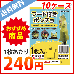 品番 PONCHO-YELLOW-10 販売価格(1箱) 24000円x10箱(税込)21818.2円x10箱(税抜) 肩幅×丈(mm) 約1260x約1000mm 1枚あたりの価格 【税込】240円【税抜】218.2円 1冊あたりの枚数 1枚入り 1箱あたりの冊数(合計枚数) 100冊入り(枚/箱) 材質 PEVA 突然の雨対策や災害時の防寒・保温に スポーツ観戦、野外ライブにも、マラソンや自転車通勤にも最適 男女兼用(対象年齢13歳以上)フード付ポンチョ 黄 まとめて10ケース(箱)