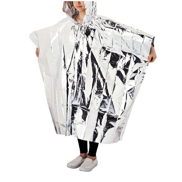 断熱効果の高いアルミ素材のポンチョ!携帯に便利なポーチ付き。
