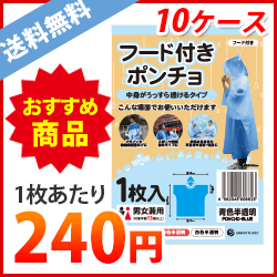 品番 PONCHO-BLUE-10 販売価格(1箱) 24000円x10箱(税込)21818.2円(税抜) 肩幅×丈(mm) 約1260x約1000mm 1枚あたりの価格 【税込】240円【税抜】218.2円 1冊あたりの枚数 1枚入り 1箱あたりの冊数(合計枚数) 100冊入り(枚/箱) 材質 PEVA 突然の雨対策や災害時の防寒・保温に スポーツ観戦、野外ライブにも、マラソンや自転車通勤にも最適 男女兼用(対象年齢13歳以上)フード付ポンチョ 青色半透明 まとめて10ケース(箱)