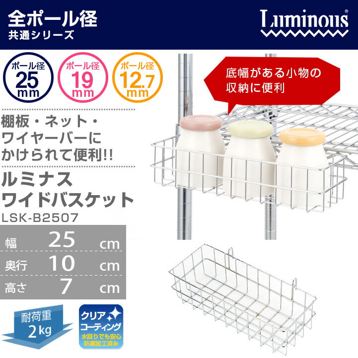 【3980円以上で送料無料】スチールラック パーツ 幅25 奥行10 ワイヤーバスケット スチール メタル ラック パーツ 吊り下げ収納 吊り下げ ボックス 吊るせる 籠 カゴ ワイヤーボックス luminous ルミナス 純正品 ワイドバスケット LSK-B2507
