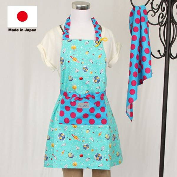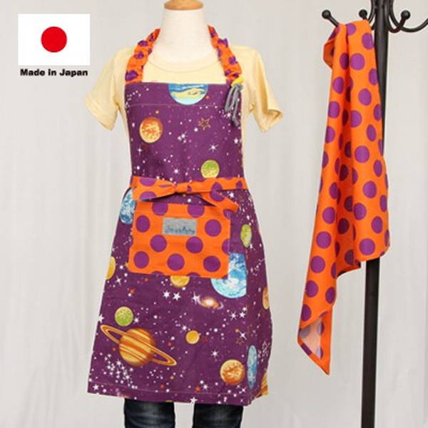 エプロン 160cm(三角巾付き) 宇宙旅行 日本製(入園・入学)(子供エプロン キッズエプロン キッチン用品 160cm 可愛い 家庭科 お手伝い 三角巾セット 調理実習 ポケット付き)