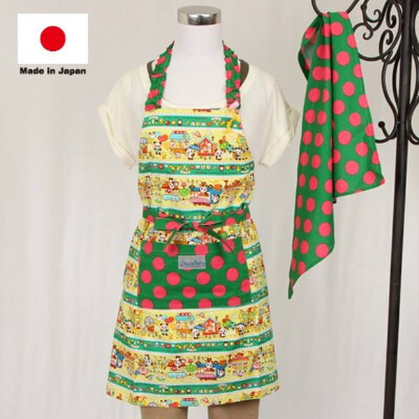パンダ柄 キッズ用 エプロン セット 同柄の三角巾付き 身長110cm用 EP-054-1A